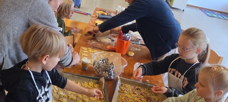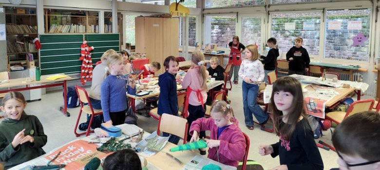 So fand in jeder Klasse einen Back- und Basteltag statt, bei der auch viele Eltern mit Ideen, Teigspenden und tatkräftiger Unterstützung zum Gelingen der Tage beitrugen. Es wurden Wichtel und Sterne, Weihnachtslichter, Fensterbilder, Karten und Weihnachtsbäume gebastelt In der Küche duftete es nach leckeren Plätzchen, aber auch hübsche Schneemänner aus kleinen Lebkuchen und winterliche Cakepops wurden fabriziert. Alle waren mit Begeisterung bei der Sache und sehr stolz auf die Werke.