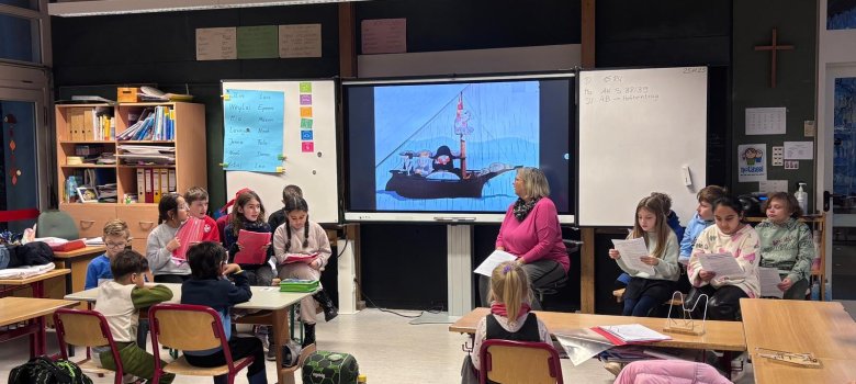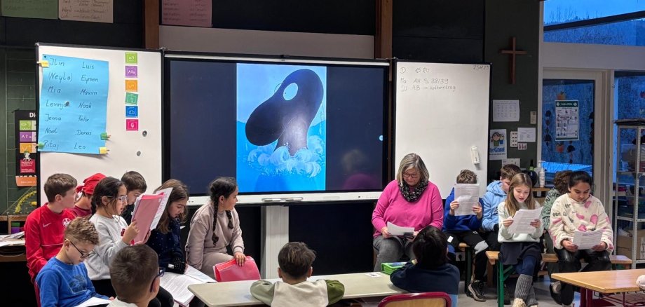 Die Drittklässler haben das Märchen vom dicken fetten Pfannkuchen mit dem Erzähltheater den Zweitklässlern vorgelesen. Die vierte Klasse hat das Bilderbuch „Käpten Knitterbart auf der Schatzinsel“ mit großen Bildern auf dem Display veranschaulicht und sehr lebendig in verteilten Rollen vorgelesen. Zudem hatten sie Fragen vorbereitet, die die Zuhörer anschließend beantworten durften. Zum Ende gab es sogar eine kleine Belohnung.